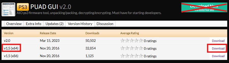 海外フォーラム(PSX-Place等)から、PUAD GUIのv1.5(x64版)をダウンロードしてください。