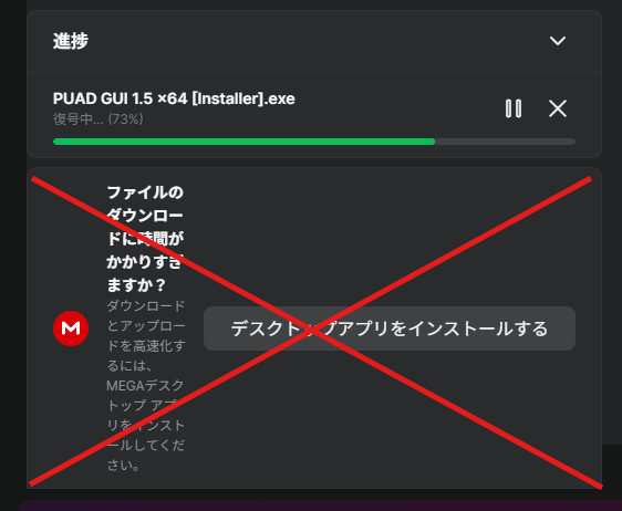※デスクトップアプリをインストールするとかでてきますが、無視してPUAD GUIがDLされるのをひたすら待ちます