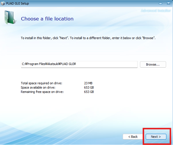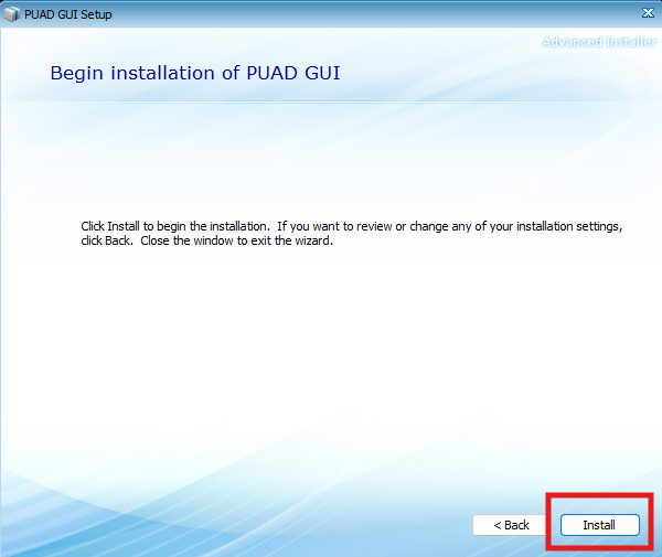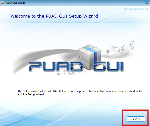 ダウンロードしたPUAD GUIのインストーラーを起動し、デフォルトの設定のままNextを押してPCへのインストールを完了させます。