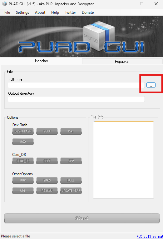 画面上部のPUP Fileの横にある参照ボタンを押し、先ほどダウンロードしたPS3UPDAT.PUPを選択します。