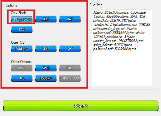 準備ができたら、start!…を押すのではなく、画面上部に並んでいるボタンの中からDEV_FLASHをクリックするとイカの画像の状態になります。