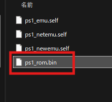 と階層を潜っていくと、ps1_rom.binというファイルが存在します。(拡張子を表示してない人は「ps1_rom」)