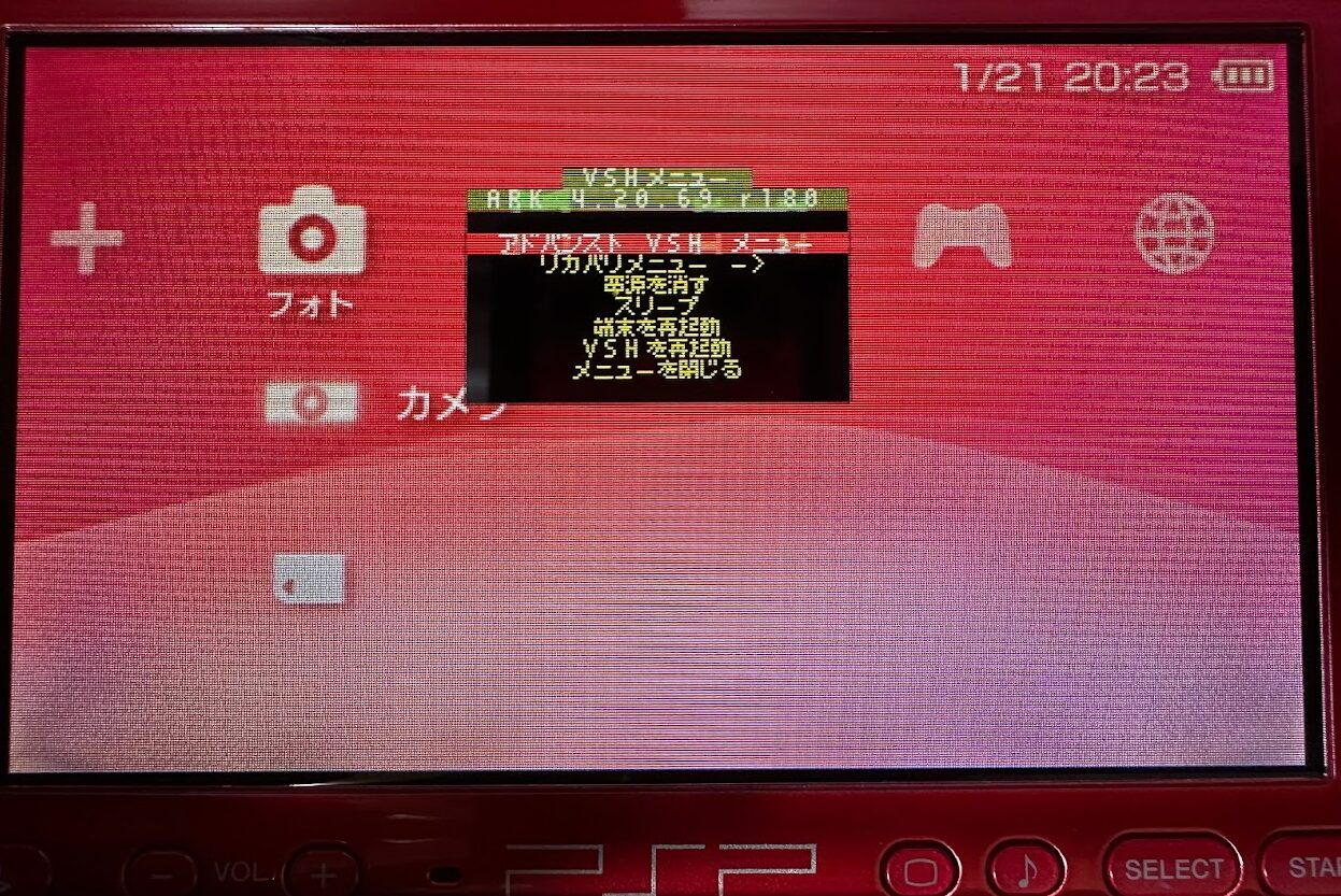 ARK-4導入済みPSPでは通常、セレクトを押すとVSHメニューが表示されます。しかし、セレクト押してもVSHメニューが表示されない場合があります。