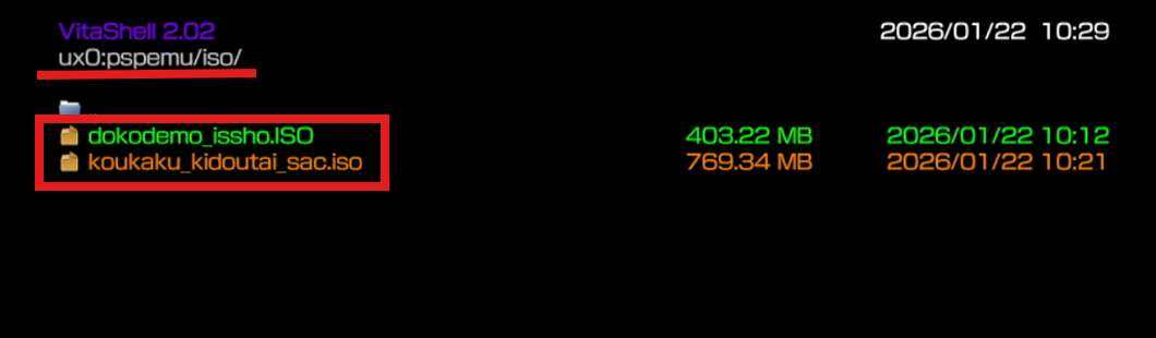 日本語(例:モンハン.iso)にすると、Vitaやエミュレーター側で文字化けしたり、起動エラーの原因になったりします。必ず半角英数字にしてください。