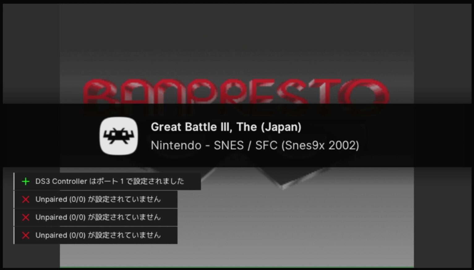 そして、エミュレータアプリ「RetroArch」を起動! …した瞬間に、最大のトラブルが起きました。