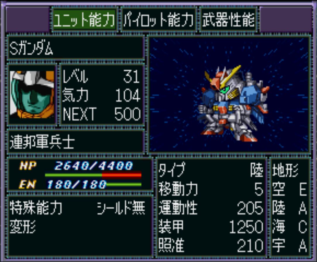 ちなみのちなみ。3.01と3.02で若干の仕様変更があり、3.01のグルンガストは計都羅睺剣・暗剣殺が序盤はオミットされていますが(「完成!超闘士」で追加)、3.02は最初から使用可能になっています。意図はわかりませんが、ボスキラーとして活躍できますね。