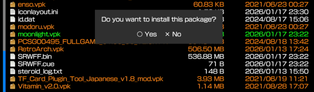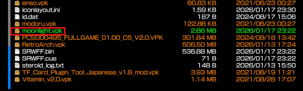 GitHubから「Vita Moonlight」の最新版(.vpk)をDLしてください。