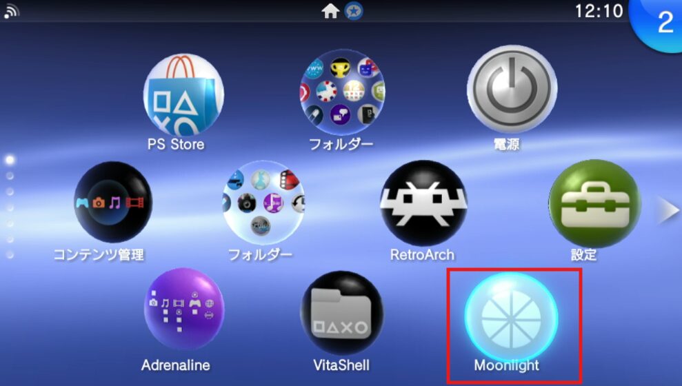 VitaのMoonlightを開くと、アプリ一覧に先ほど登録したゲームが表示されているはずです。