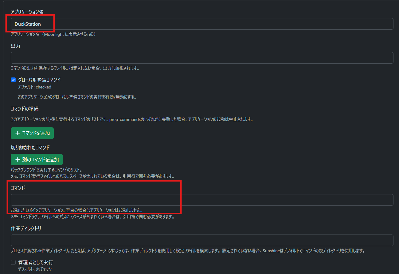普通にやると、「Moonlight起動」→「デスクトップ表示」→「マウスでDuckStation起動」→「ファイル選択」……と、寝転がってやるには面倒すぎます。