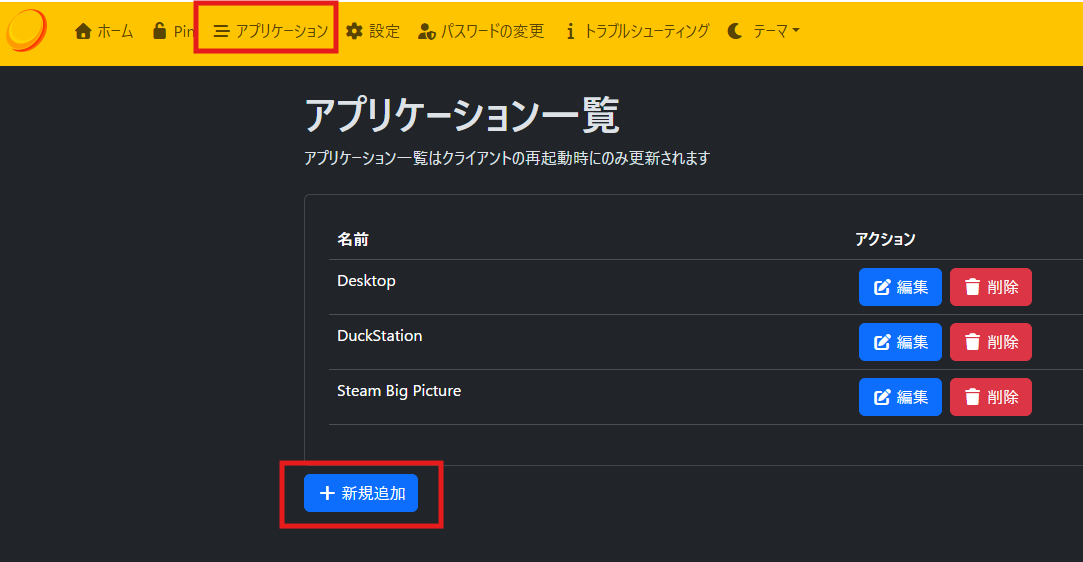 Sunshine(ホスト側設定)の「Applications」タブで、登録するアプリを変えるだけです。