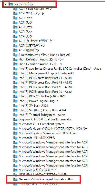 システムデバイスを開けて、「Nefarius Virtual Gamepad Emulation Bus」があるか確認してください。なければ再インストールをお願いします。